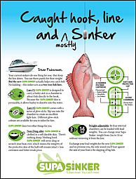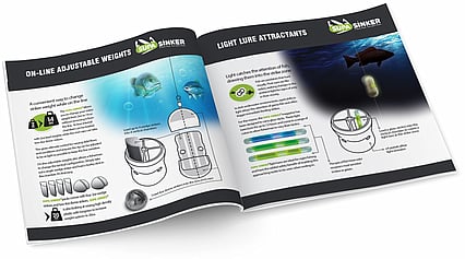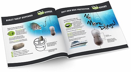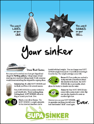 Peter Welsh invented a revolutionary sinker. His product needed a positioning strategy, a brand name & logo and marketing materials. The key offerings that needed to communicated: this soft-skinned sinker doesn't damage your boat + helps attract & catch fish.