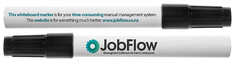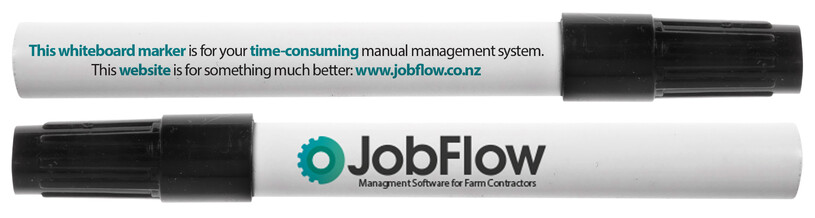DIRECT MAILER: To drive potential customers to our JOBFLOW website, we sent printed pens to the farm contractors we knew were operating with whiteboards.