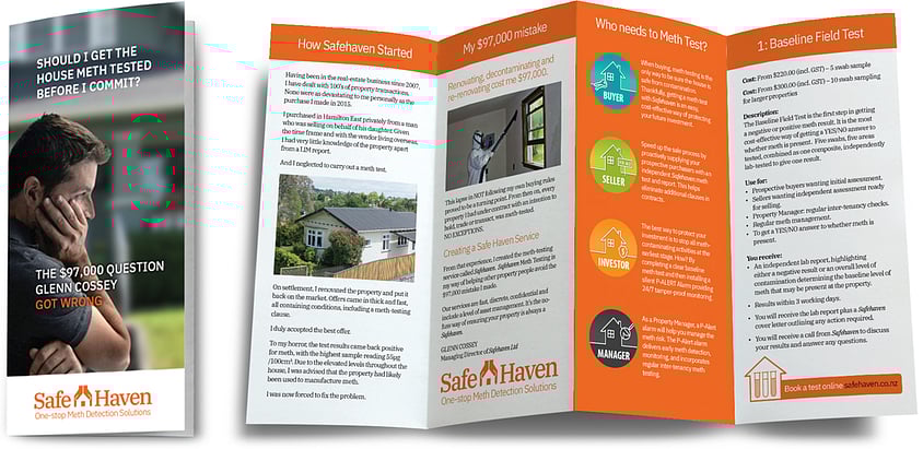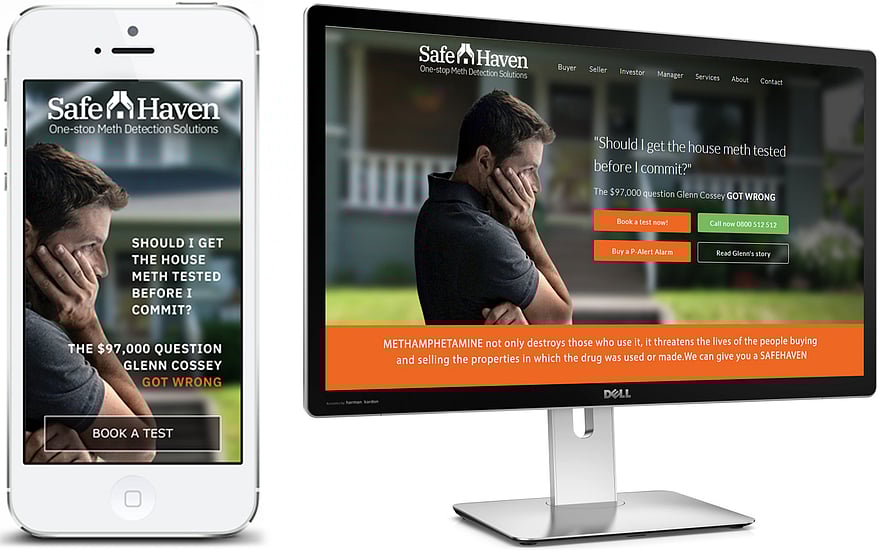 SAFE HAVEN is a residential meth-testing business. Upon interviewing the owner, I learned about the huge mistake he'd previously made as a property investor - losing $97,000 because he failed to meth test. Rather than bury this story in the ABOUT US section of his website, I knew we should build his entire communication around it.