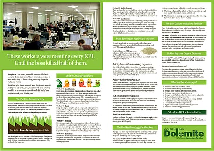 To create marketing collateral, I first had to learn the complexities of farm contracting. Visits to contractors enabled me to (1) identify the core problem (2) create a brand (3) script & storyboard a video (4) design a brochure (5) bring it all together at a Fieldays site.